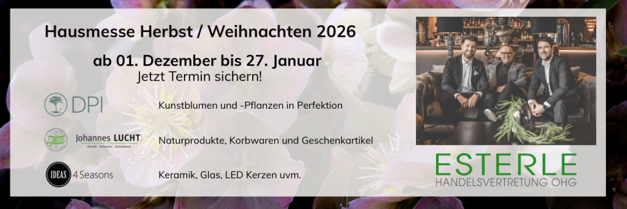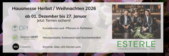 Im April 1990 gründete er die Handelsvertretung mit Produktschwerpunkt Kunstblumen, Floristik und Dekorationsartikel.